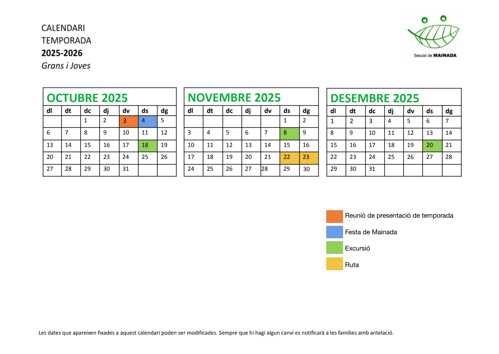 En les excursions o rutes que es requereixi un material específic s’enviarà un correu informatiu amb la llista corresponent