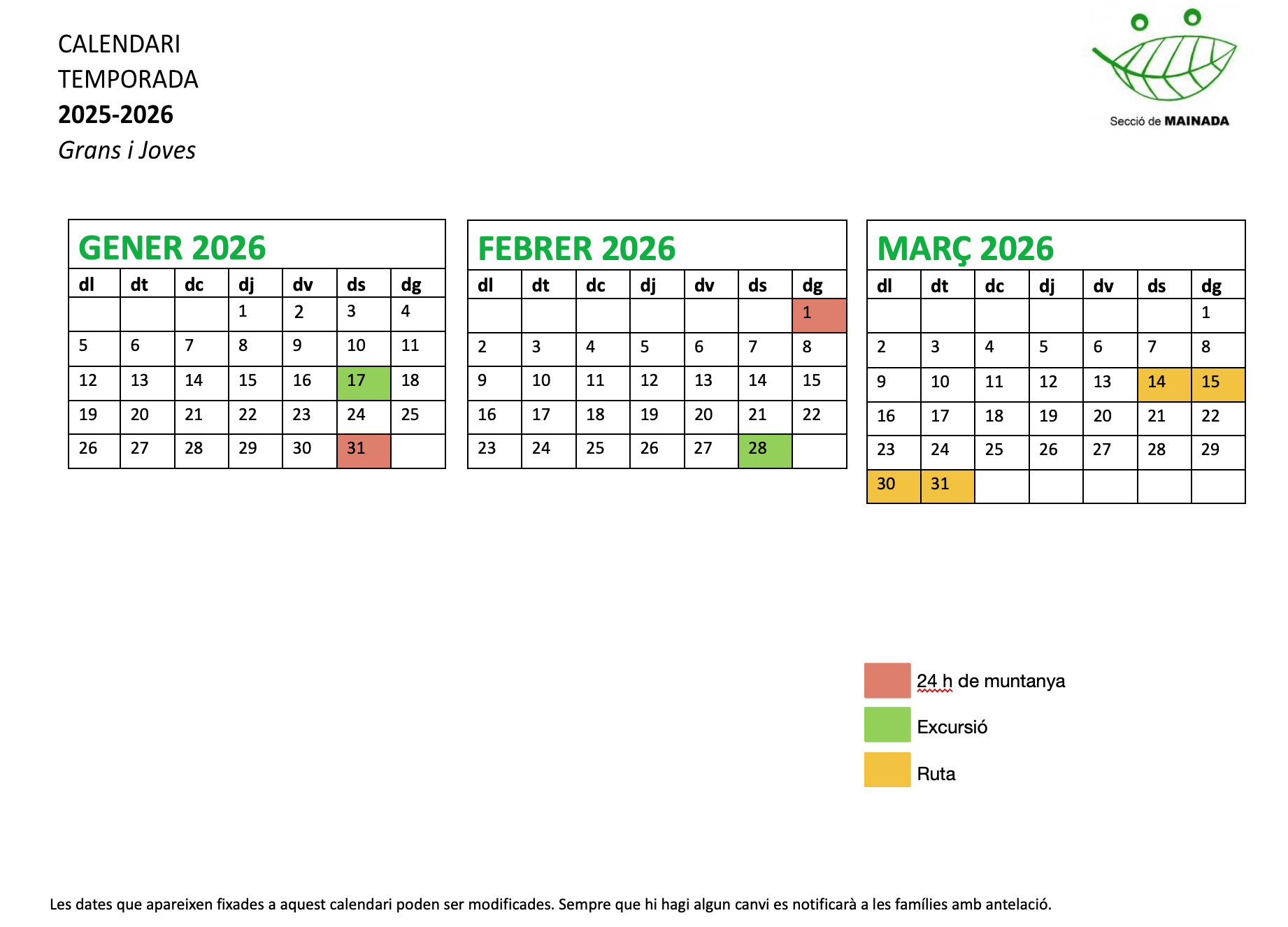 En les excursions o rutes que es requereixi un material específic s’enviarà un correu informatiu amb la llista corresponent