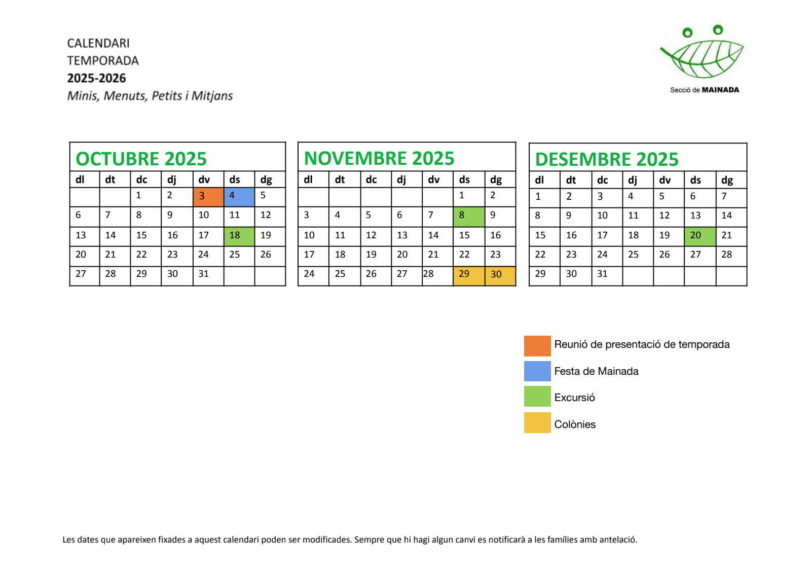 En les excursions o rutes que es requereixi un material específic s’enviarà un correu informatiu amb la llista corresponent